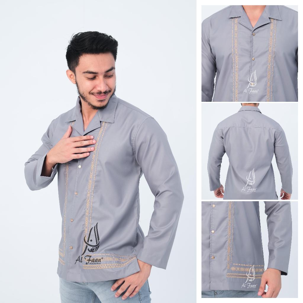 Baju koko pria bordir lengan panjang koko kemko pria dewasa katun busana muslim pria