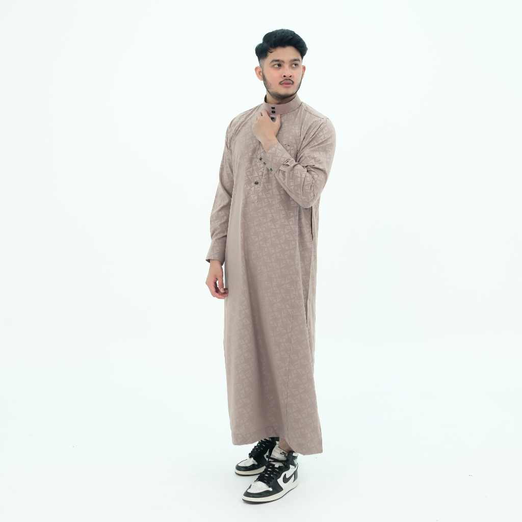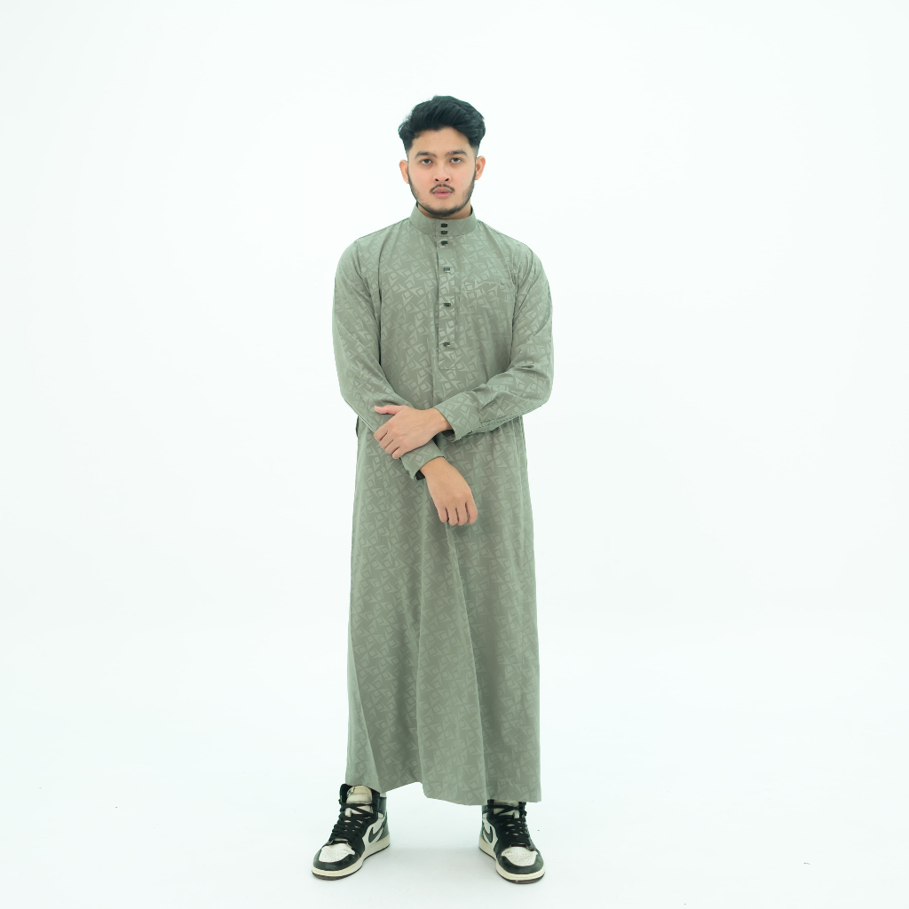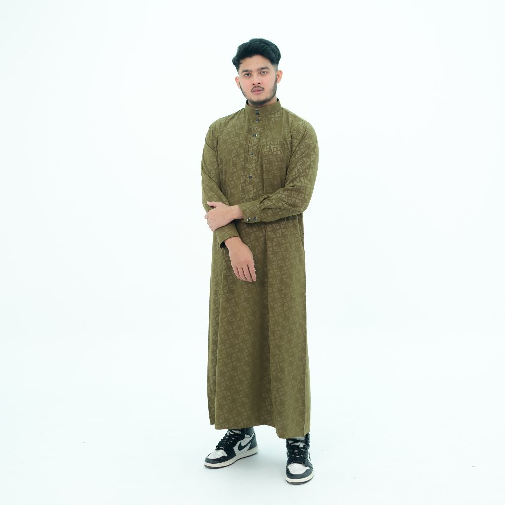 Jubah Pria Gamis pria motif embos lengan panjang manset kancing robes hitam Jubah Pria Muslim Pria Jubbah Alfaan terbaru