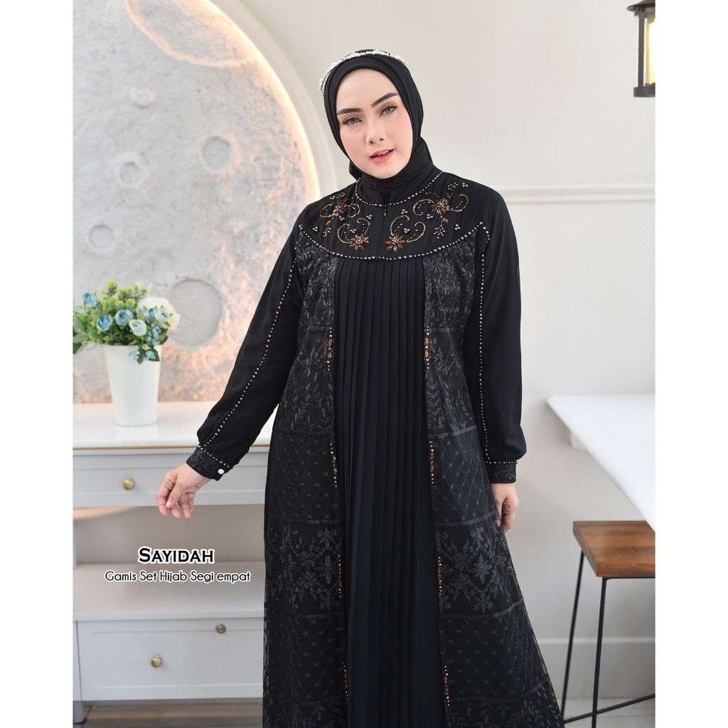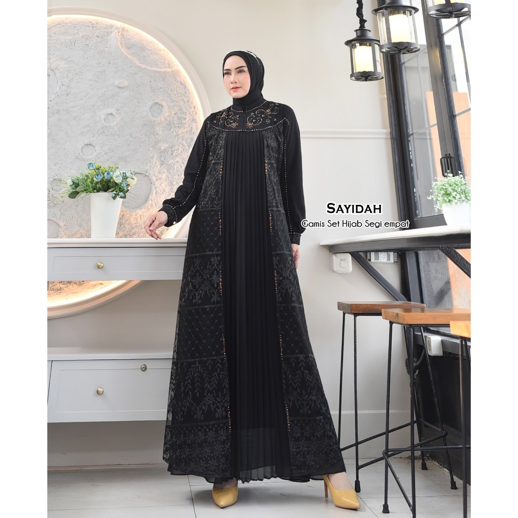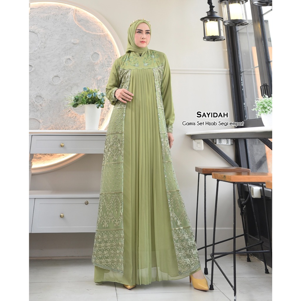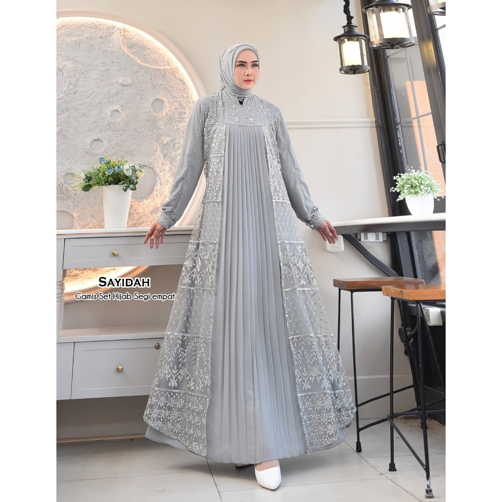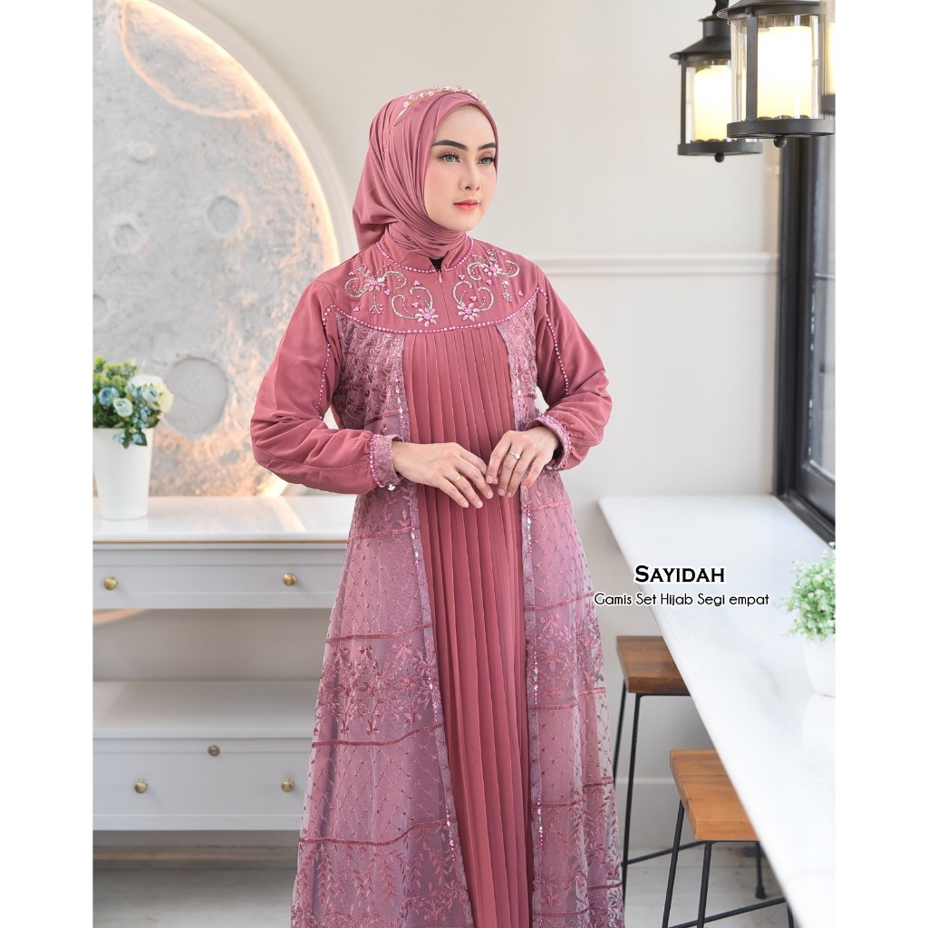 SAYIDAH Baju Gamis Kondangan Set Hijab Model Kekinian Mewah lapis brokat