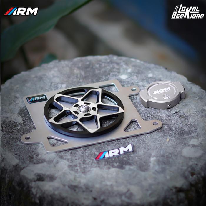 Arm Paketan Cover Radiator Spiner 3D Type Bintang + Radiator Cap slver - Hitam Merah, Vario, Adv, Pcx150