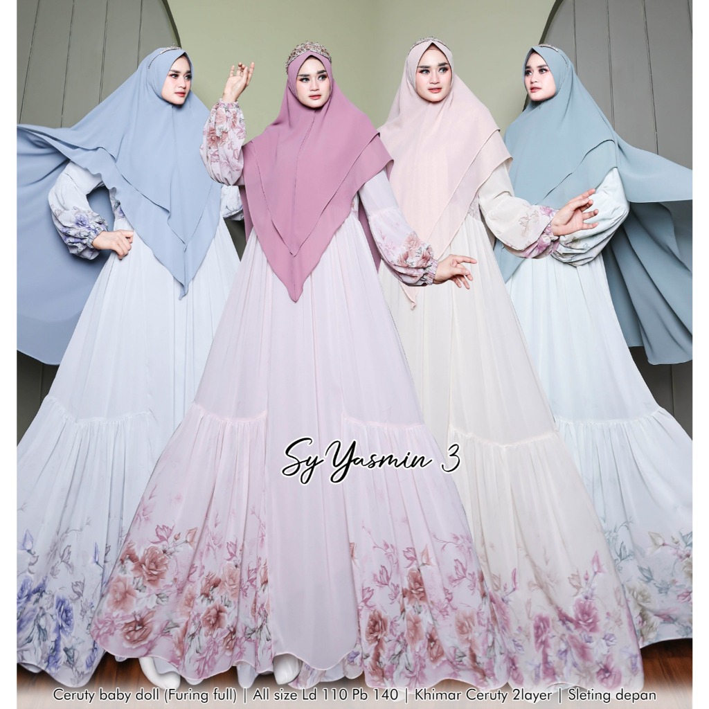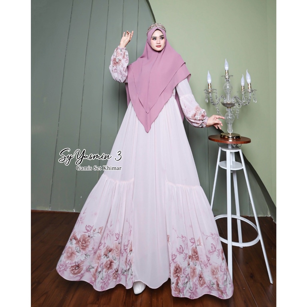 Syar'i YASMIN-3 Gamis Set Khimar Gamis Motif Gamis Mewah Gamis Lebaran Terbaru