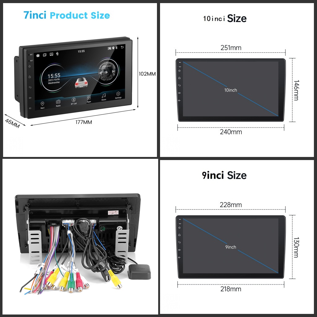 GEARELEC Android 14 Head Unit 7/9/10inci Mobil Navii 4G + 32G Double Din Car Radio Bluetooth/GPS/FM IPS Lapisan Layar