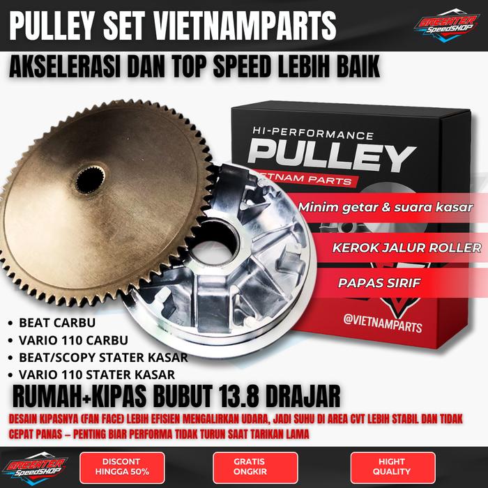 Vietnamparts Pulley Set Rumah Roller Custom Vario 125/150 Nmax Aerox Lexi 2020 Pcx/Adv Vario 160 Mio M3 Mio Soul Gt Moto
