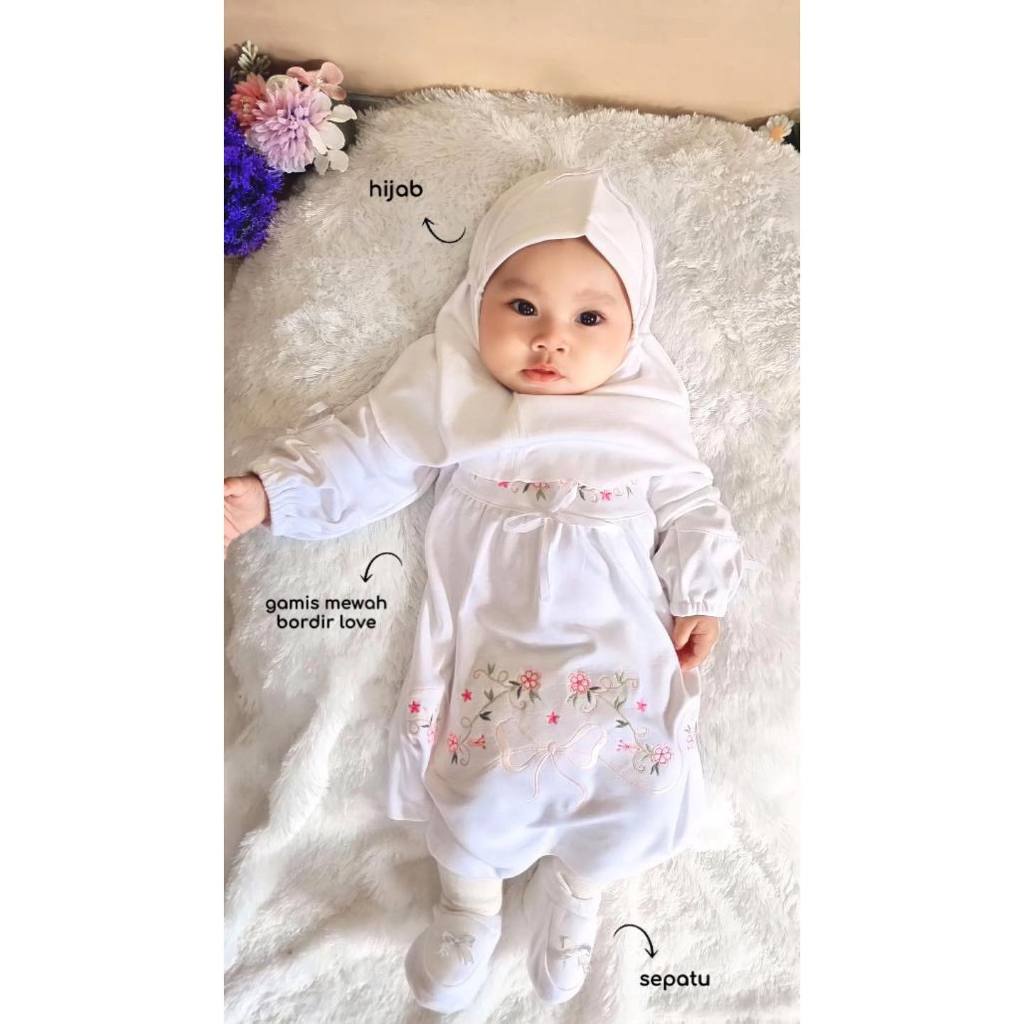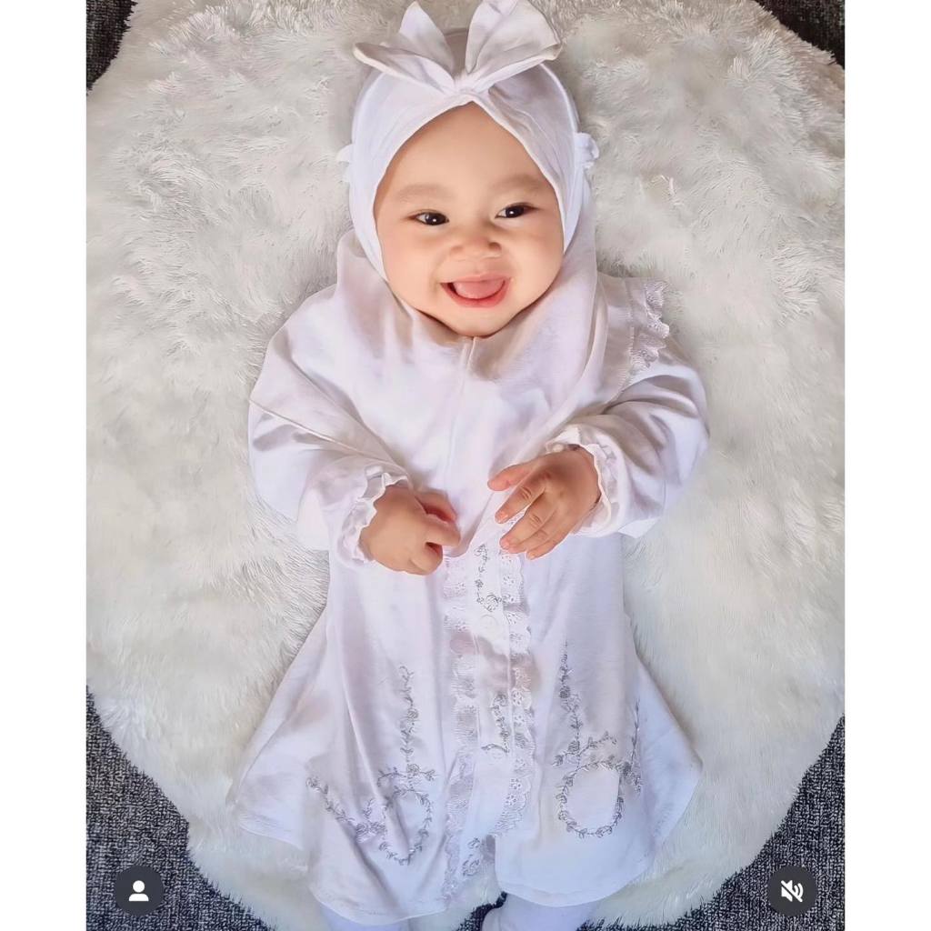 Dress anak rok Gamis Muslim bayi Cewek Perempuan silucubabyshop sweet love bunny pure white aqiqah mawar earth tone AQIL