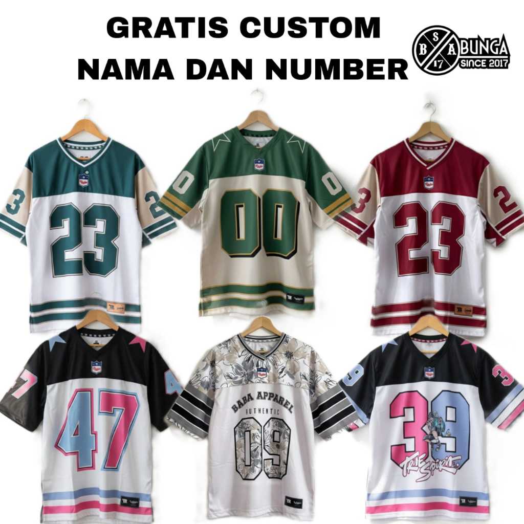 BUNGA17 Jersey Custom Geratis Nama Dan Number Dewasa Dan Anak Unisex Oversiza Vintege