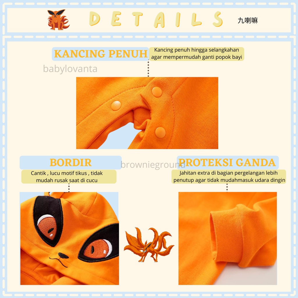 Babylovanta Jumper Bayi Karakter Kyubi Naruto | Baju Kostum Bayi Cowok 0-18 Bulan Katun 100 PERSEN