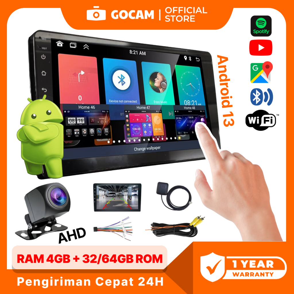 GOCAM Head Unit Android 9inch 4+32/64G 7/9/10inch + Cooling System Car Android 13 Audio Mobil GPS BT Music WIFI Navii