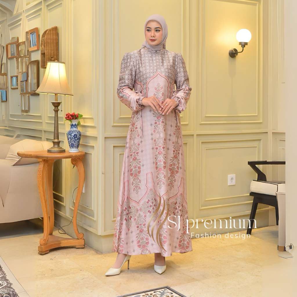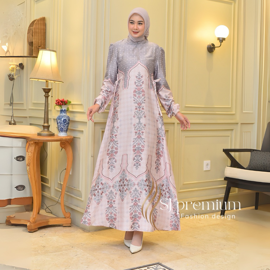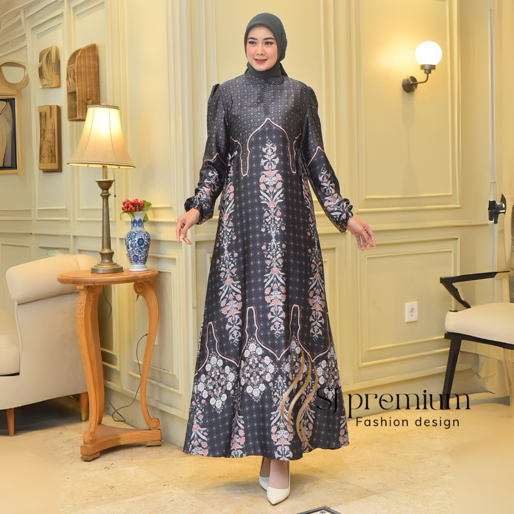 baju gamis armany silk premium HIQH QUALITY motif bunga etnik ukuran jumbo LD130CM terbaru TERLARIS