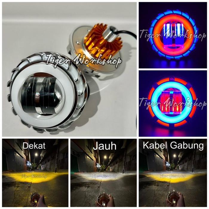 Lampu Utama Projie Jauh Dekat Kuning Putih High Low Ae De Spiral Running Standby Rbr - 3.5 Inch Bulat, Putih-Putih