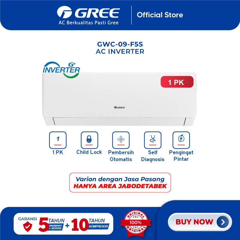 GREE AC F5S SERIES - INVERTER 1 PK - GWC-09F5(S) - WHITE PEARL (Unit Indoor & Outdoor)