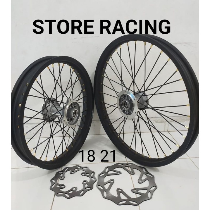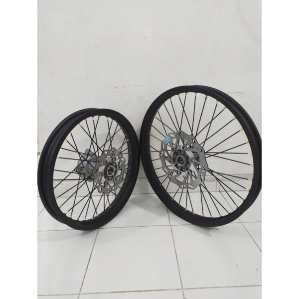 sepaket velg ruji klx dan CRF 18-21 dan 16-19 velg jari2 tromol klx set depan belakang bonus piringan cakram depan belak
