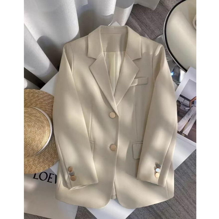 Clothesup Blazer Wanita Outer Warna Cream Dan Hitam Polos Atasan Basic Simple Elegan Korean Style