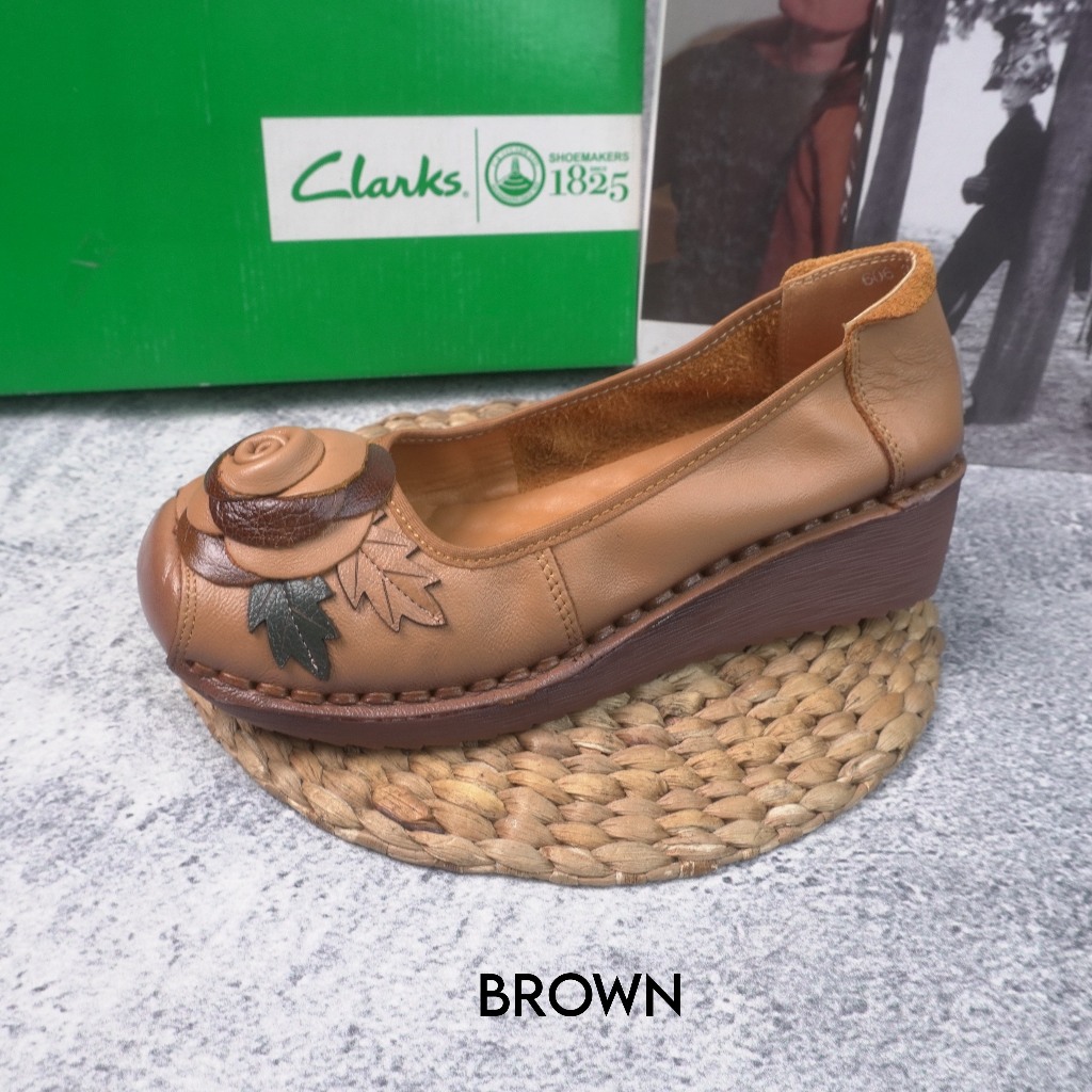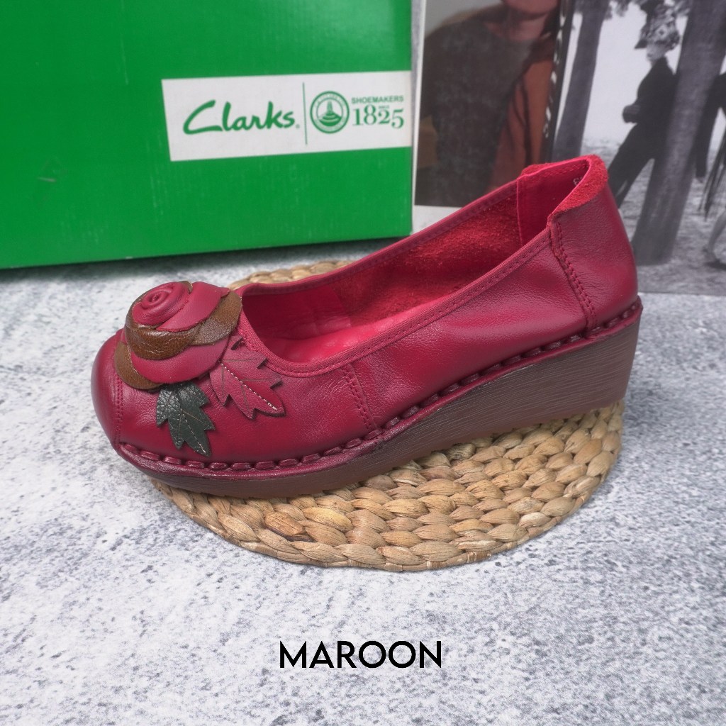 CLARKS Sepatu Wedges Wanita Kulit Sapi Asli AH 8683 Free Box Empuk Terbaru