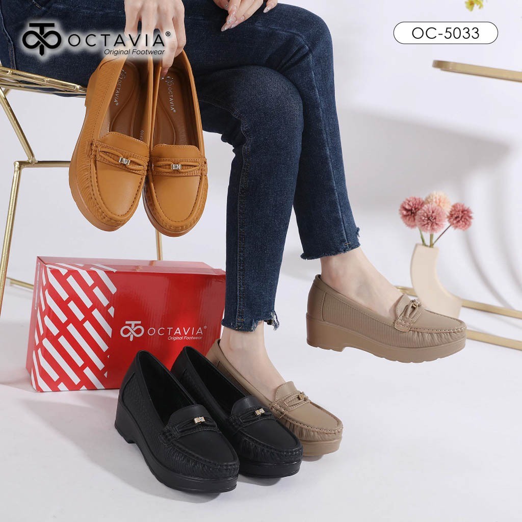 OCTAVIA Sepatu Wanita Platform Wedges Bahan Kulit Lembut Premium #OC-5033