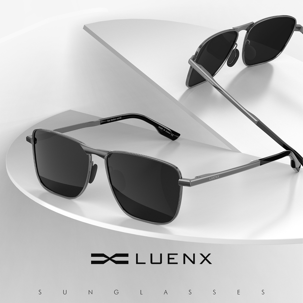 Luenx Kacamata Hitam Rectangular Polarized Aviator Sunglasses Unisex Retro Pilot Shades Driving UV400 Protection 6405-2