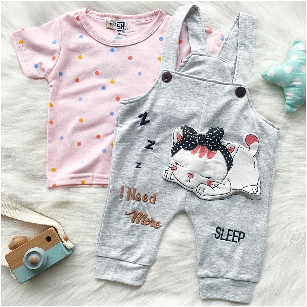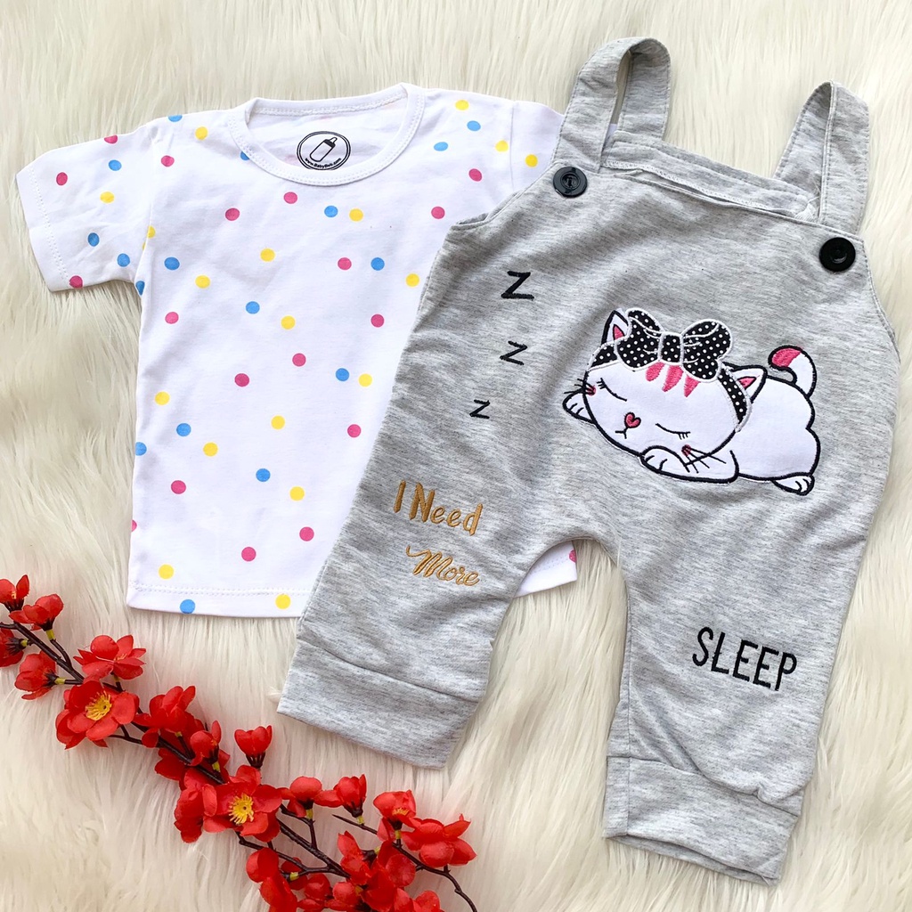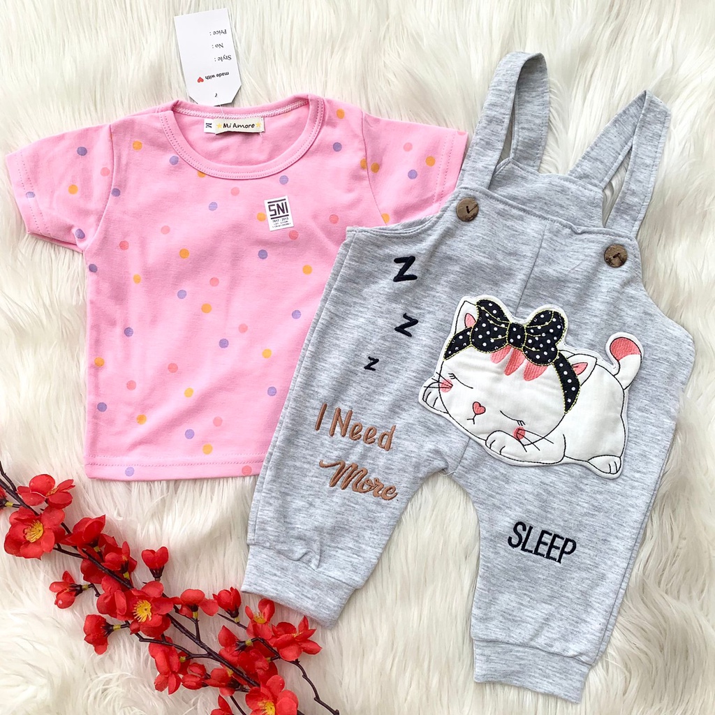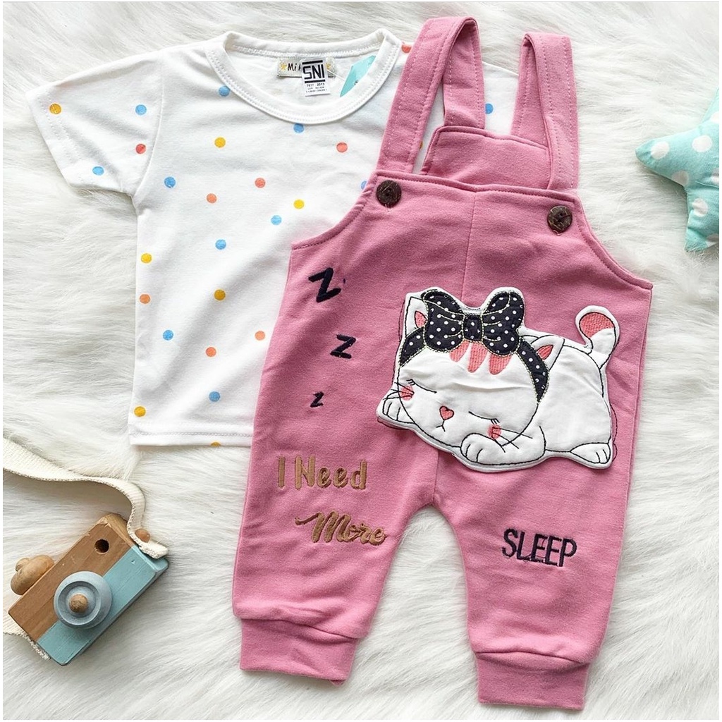 Baju setelan kaos overall aplikasi lucu fashion anak bayi cewek perempuan unisex murah -sle