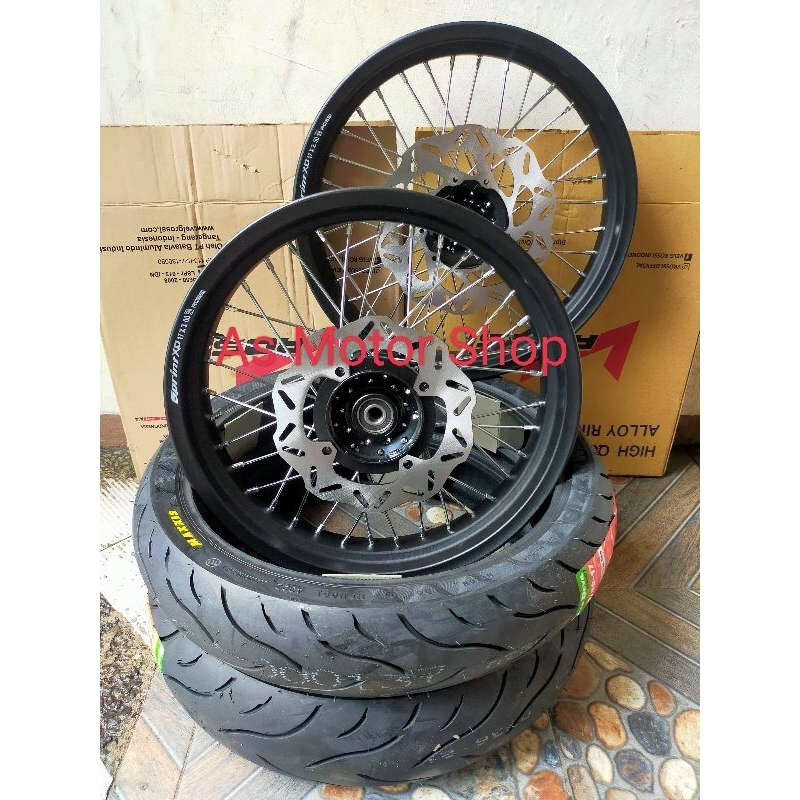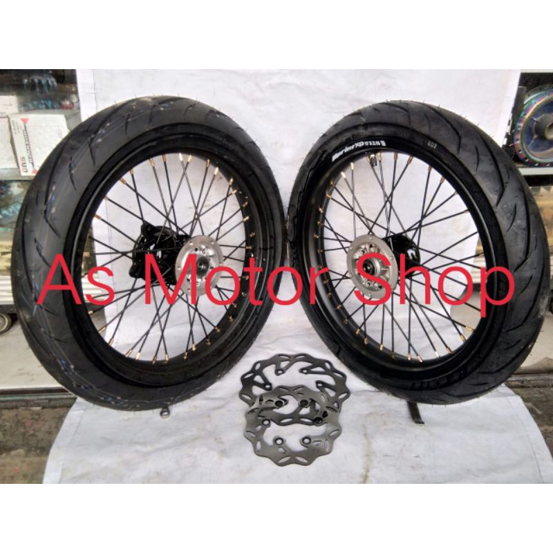 VELG SET SUPER MOTO CRF150 KLX150 WR155 VELG TAPAK LEBAR UKURAN 250 - 300 RING 17 TROMOL SET FREE CAKRAM PLUS BAN LUAR D