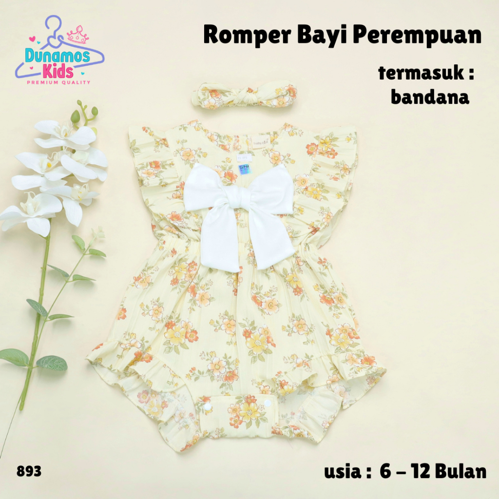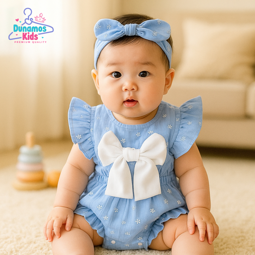 Baju Bayi Perempuan Set Jumpsuit Romper Anak termasuk Ban usia 6 12 Bulan