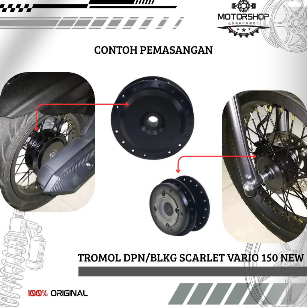 TROMOL DEPAN BELAKANG " SCARLET RNG " VARIO 150 NEW SATU SET TROMOL DEPAN CAKRAM BAUT 5