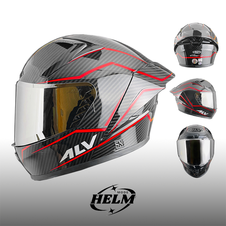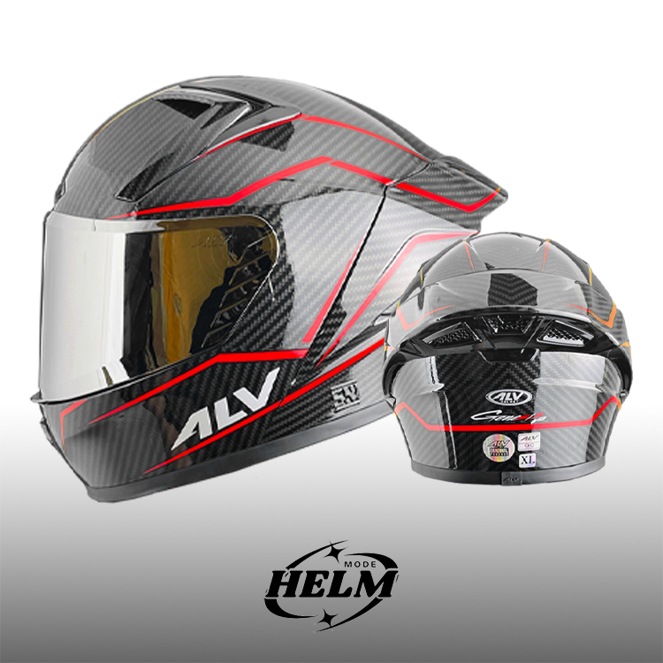 ALV GENESIS V2 NEW HELM FULL FACE MOTIF CARBON RED STRIP VISOR SILVER STANDARD SNI PREMIUM