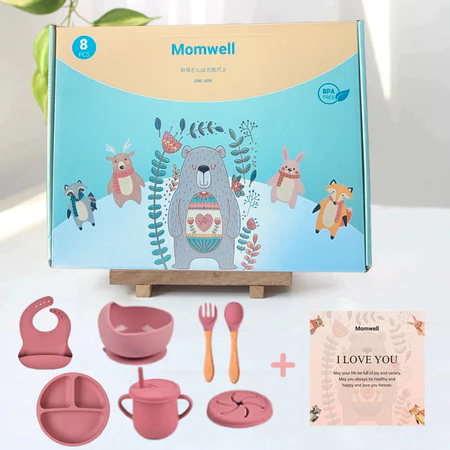 GRATIS ONGKIR 8 in 1 Alat Makan Bayi Baby Gift Set Peralatan Makan Silikon Dengan Kartu Ucapan BIB06