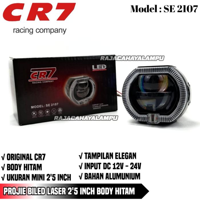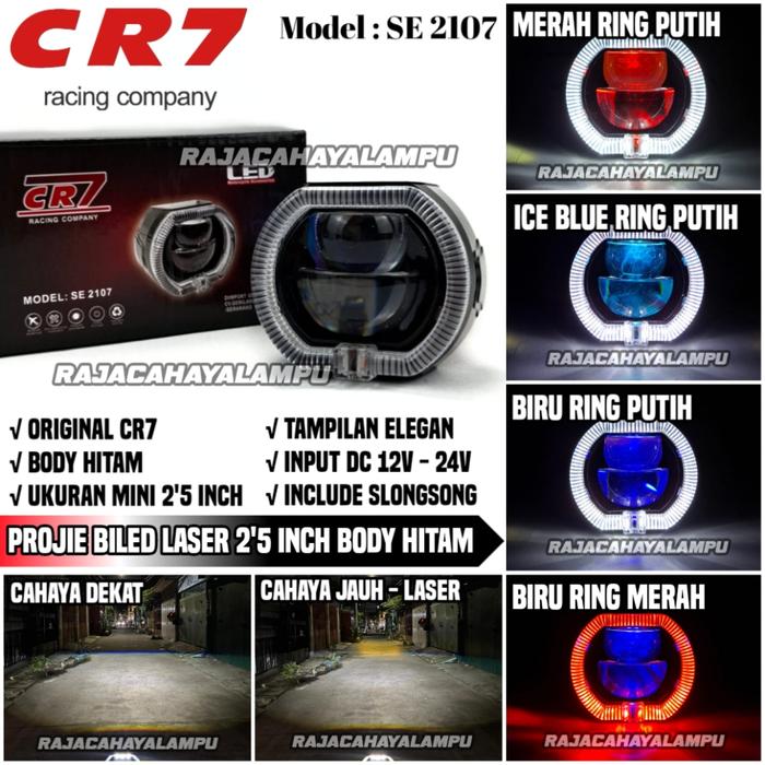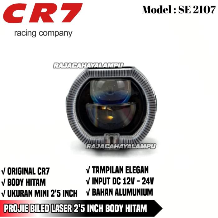 Lampu Depan Projie Biled Laser Mini 2,5 Inch Cr7 Se 2107 Body Hitam Cahaya Flat Cut Plus Devil Shourd Universal - Ungu R