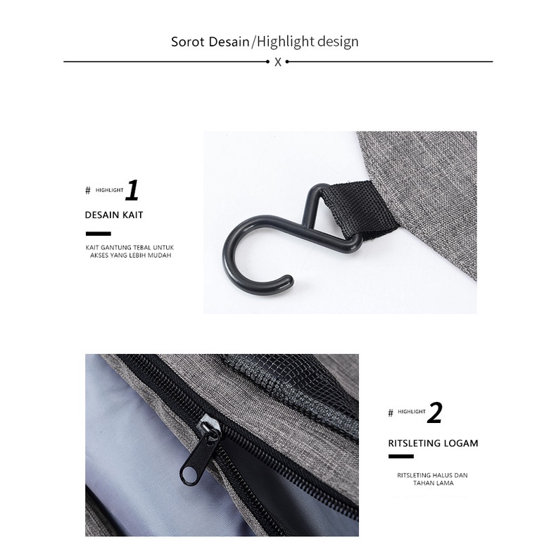 MOA Tas Travel Pouch Gantung /Tas alat mandi dan kosmetik / Travel Peralatan Mandi dan Make Up Toiletry Pouch Toilet/