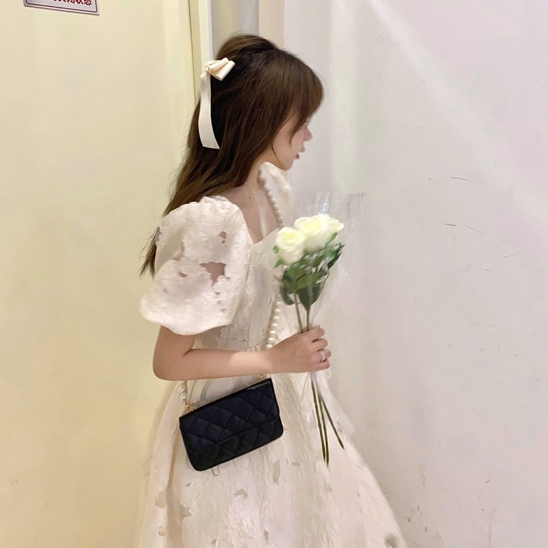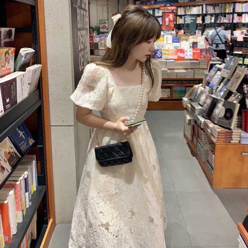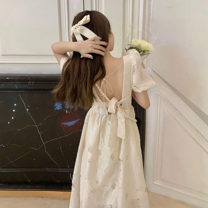 Susana ID Blackless Lace Up Dress Bubble Sleeves D055