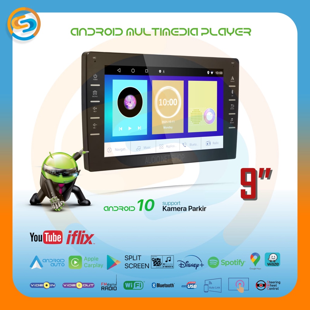 Headunit ANDROID Za RI RU Head Unit Mobil 9 inch 8 GB / 128 GB