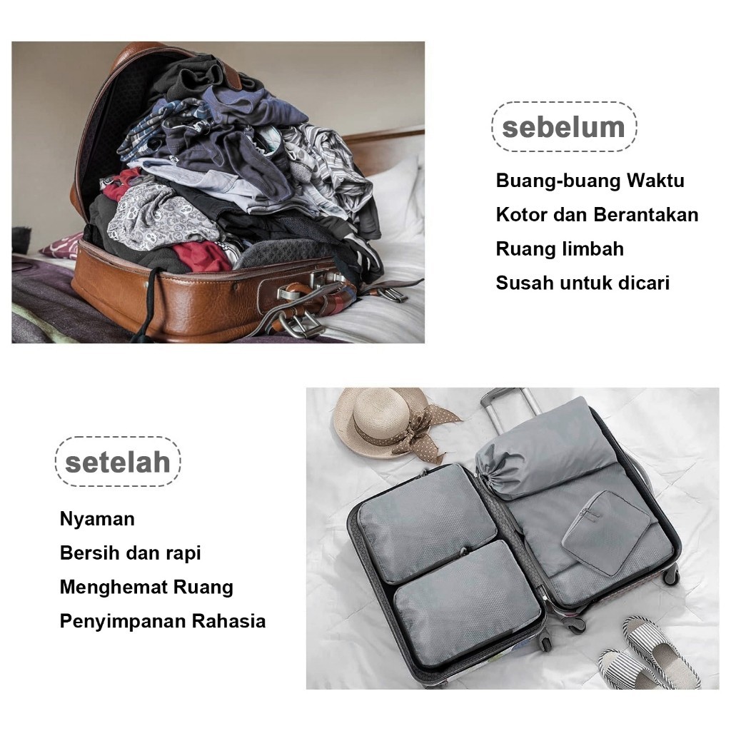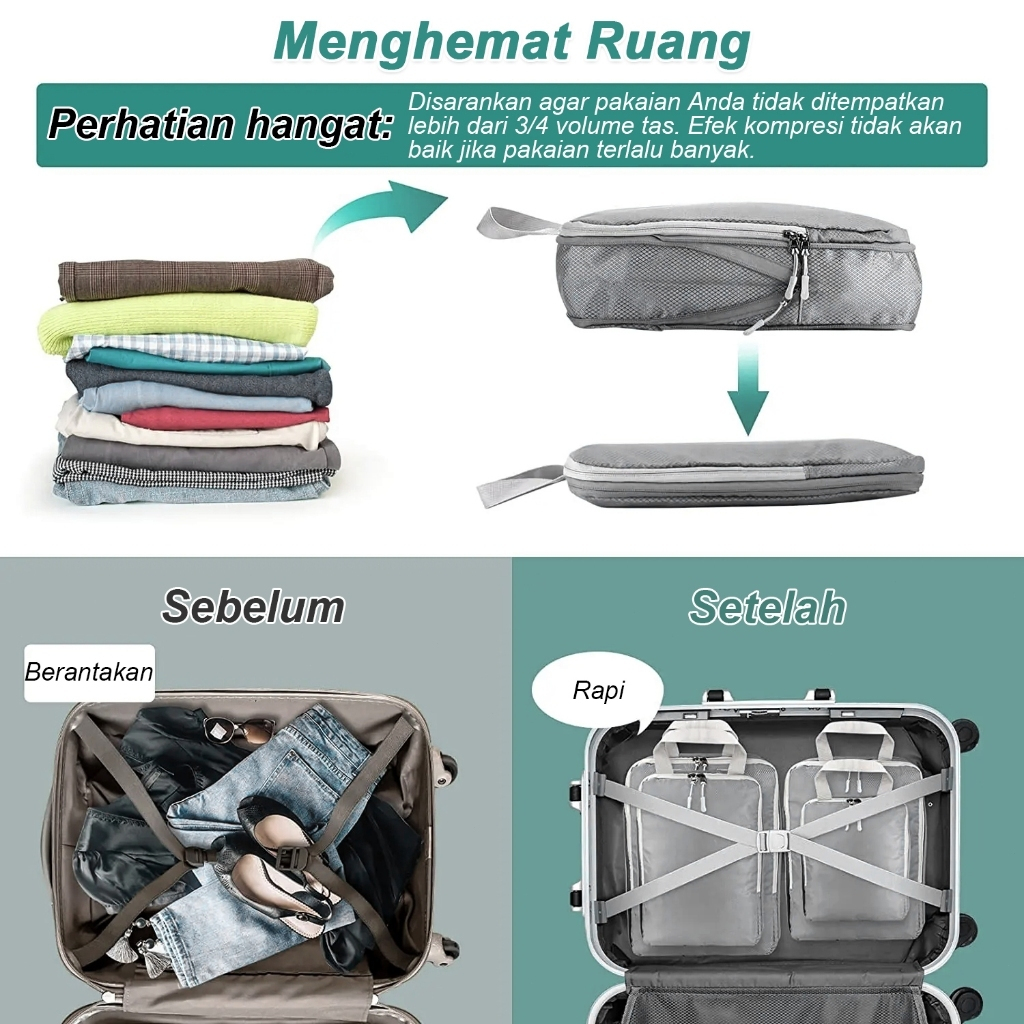 ✅8 In 1 Tas Traveling Pakaian Travel Bag Organizer Premium Travel Pouch Press Set Storage Luggage Tas Penyimpanan Koper