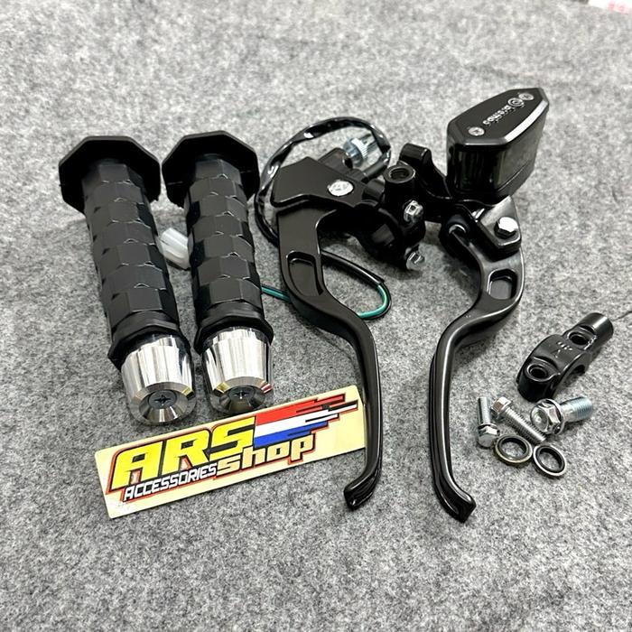 Master Rem Brembo Oval Kiri Kanan + Grip Oktagon Kotak Kotak Bonus Jalu Stang Chrome Pnp Semua Motor Beat Mio Vario Geni