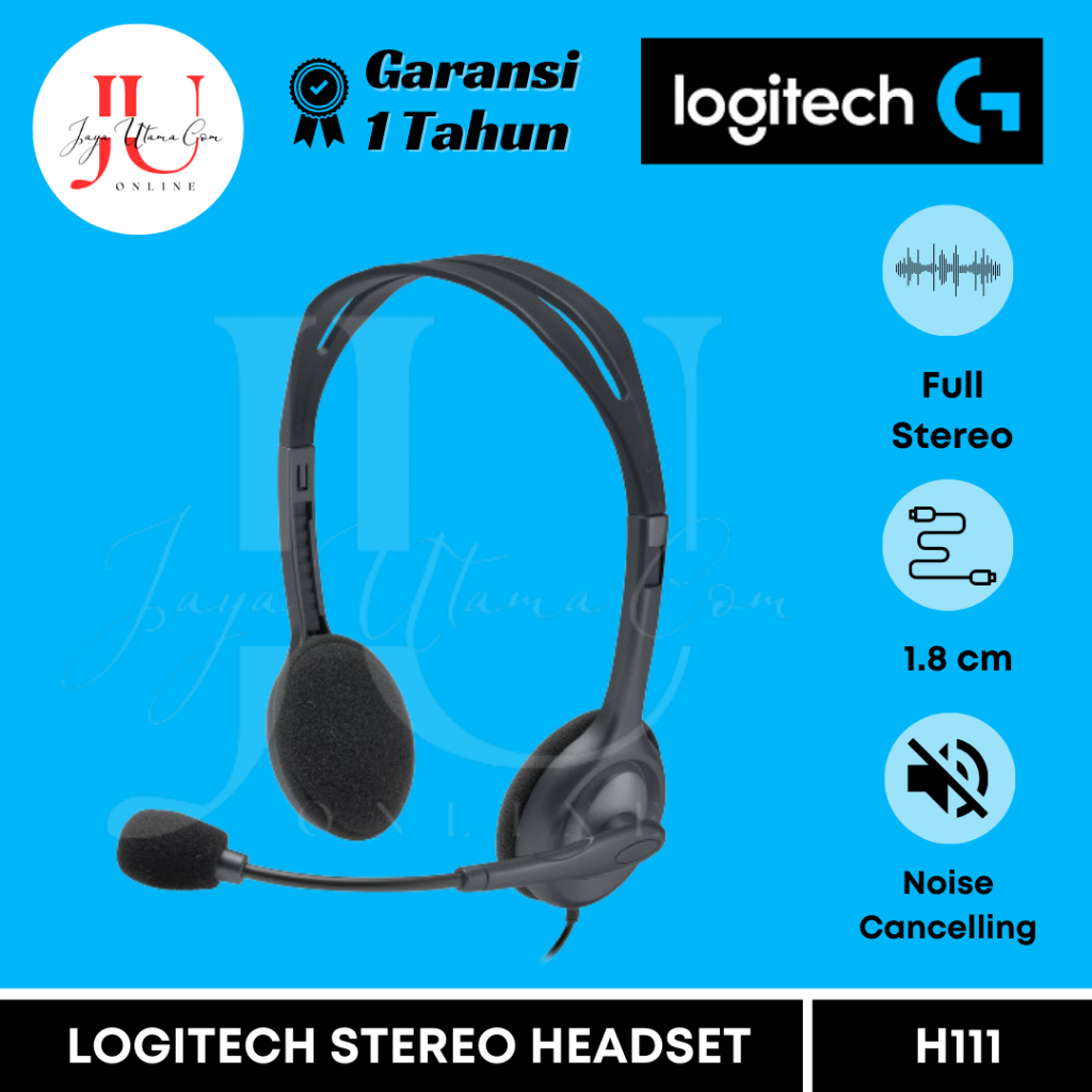 HEADSET LOGITECH H111 STEREO 3.5MM – MIC UNTUK LAPTOP, HP, ZOOM, MEET – GARANSI RESMI