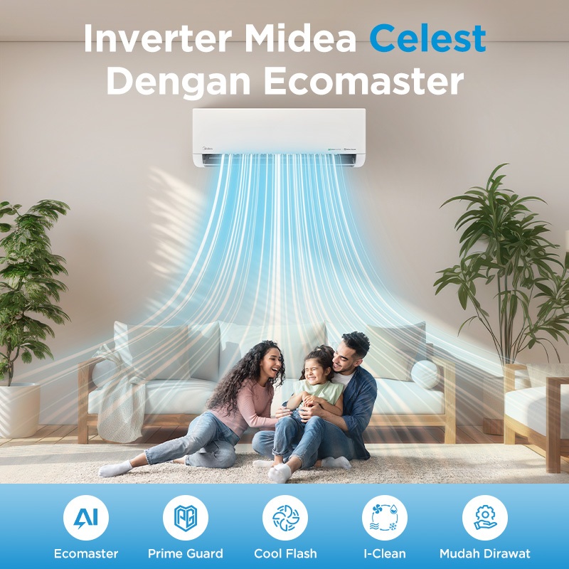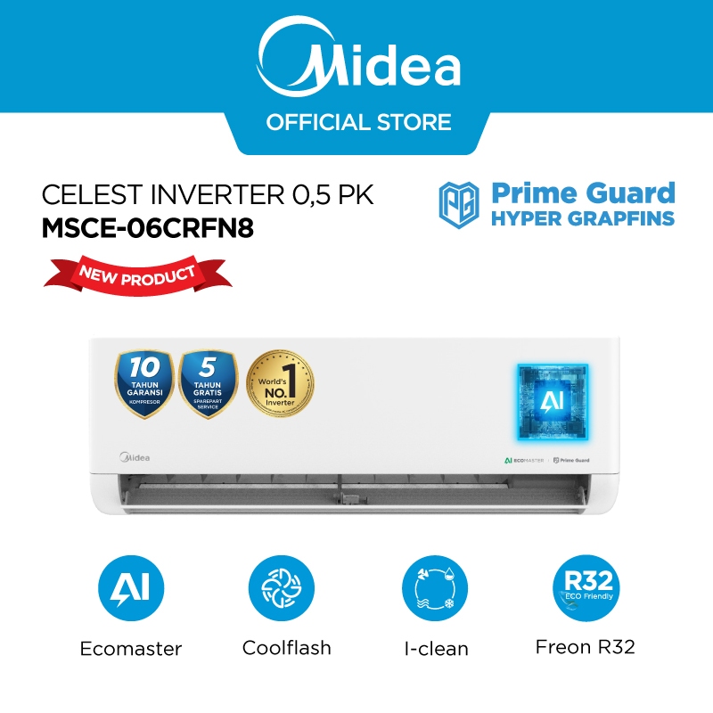 [INVERTER AI TECH] Midea AC Celest 0.5 PK MSCE-06CRFN8 (Unit Indoor & Outdoor) - AI Ecomaster 70 PERSEN Lebih Hemat Listrik Fast Cooling