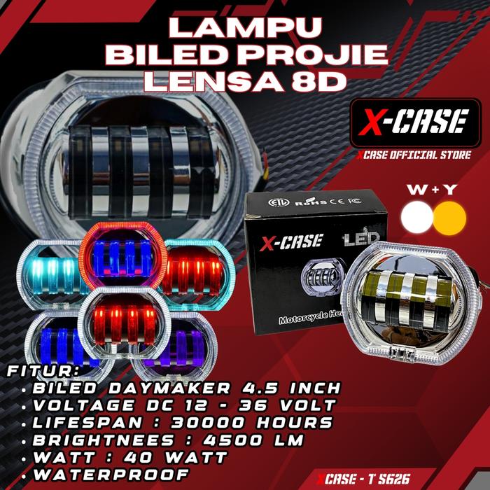 X- Case Lampu Biled Projie 4 Lensa 8D 4.5 Inch Shroud Ring Angel Eye Universal Motor Mobil Dd 171 Motorcycle Waterproof