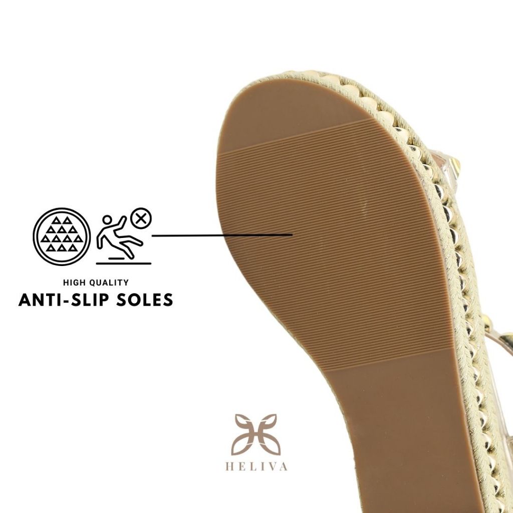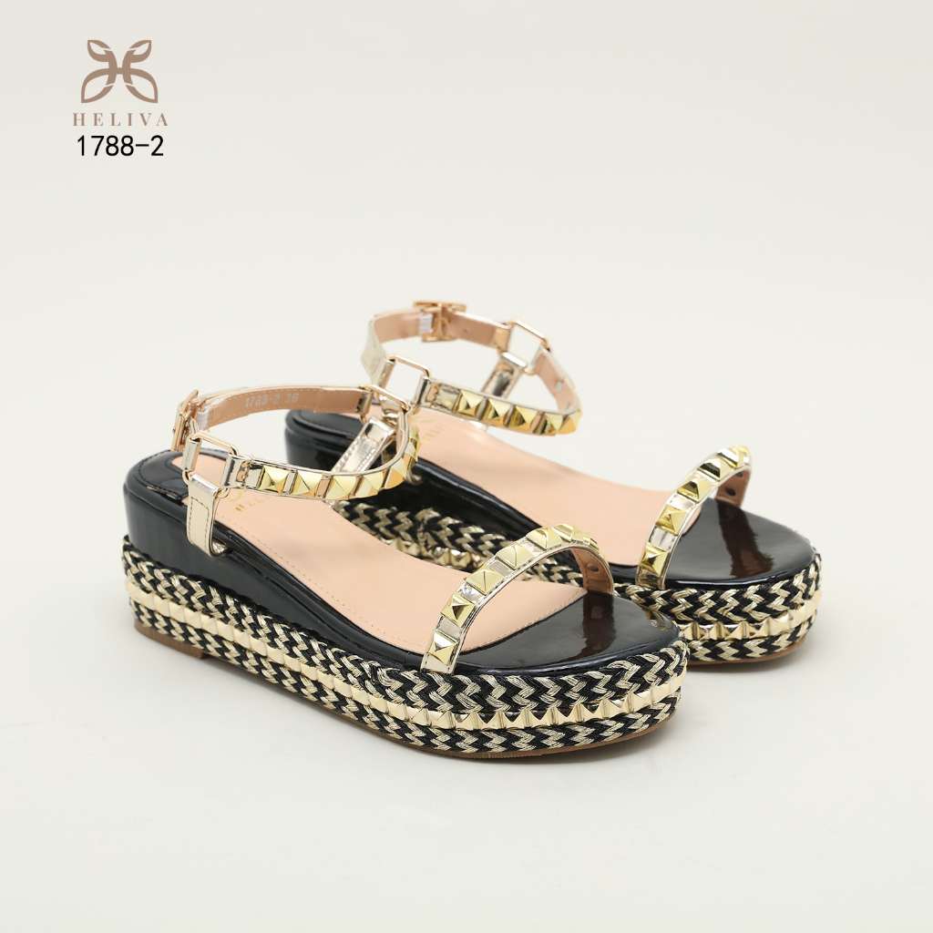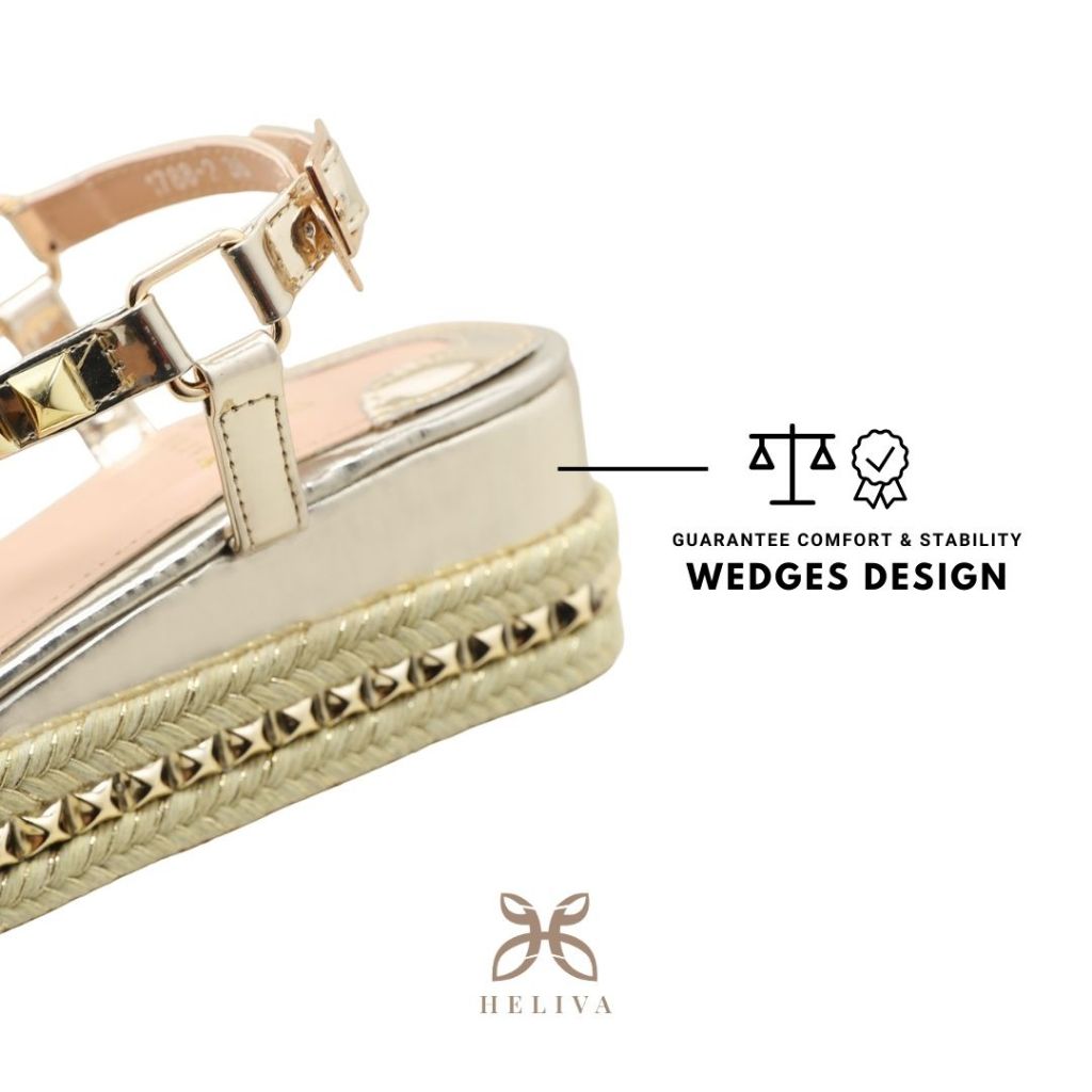 D100 VB HELIVA Agnes Sandal Wedges Wanita Sol 6cm Ankle Wrap Aksesoris Studs Bahan Kulit Kepang Glossy Mewah Elegan HV1