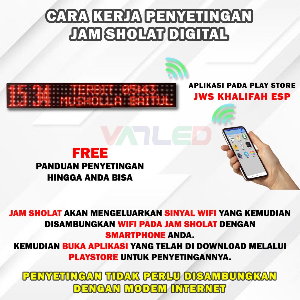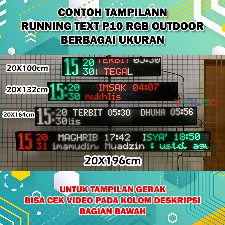 Jam Sholat Masjid Running Text JWS Jadwal Shalat Solat Digital Masjid P10 Merah Hijau Putih 16X96 Pixel 20X100 Cm Tartil Non Tartil