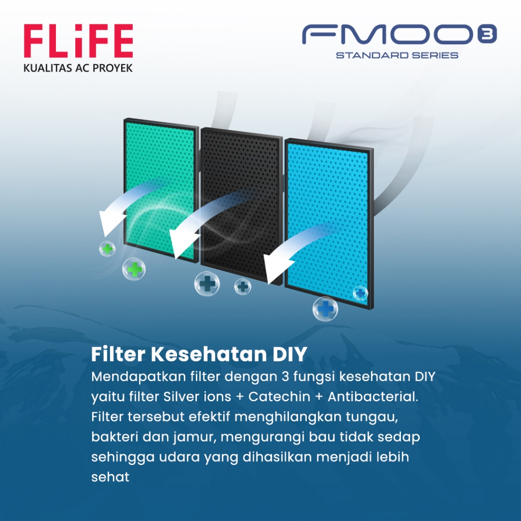 FLIFE AC 1/2 PK Standard - Turbo Mode - Gold Fin Anti Korosi - Fitur Dehumidifier - FAC-05FMOO3