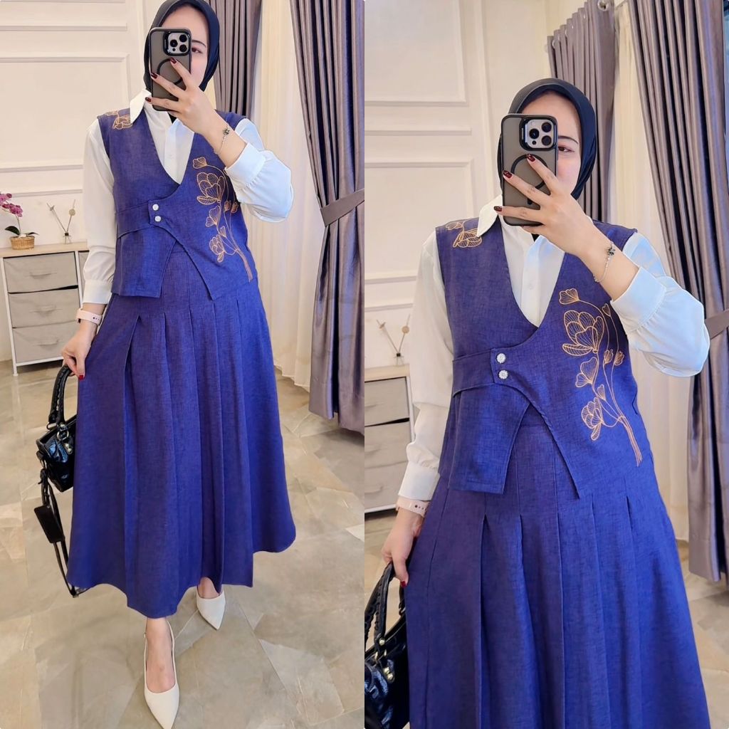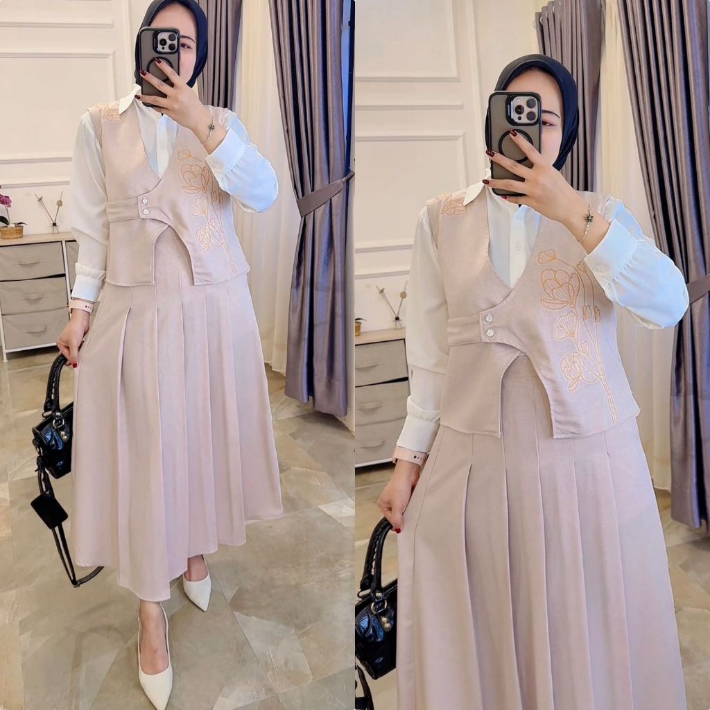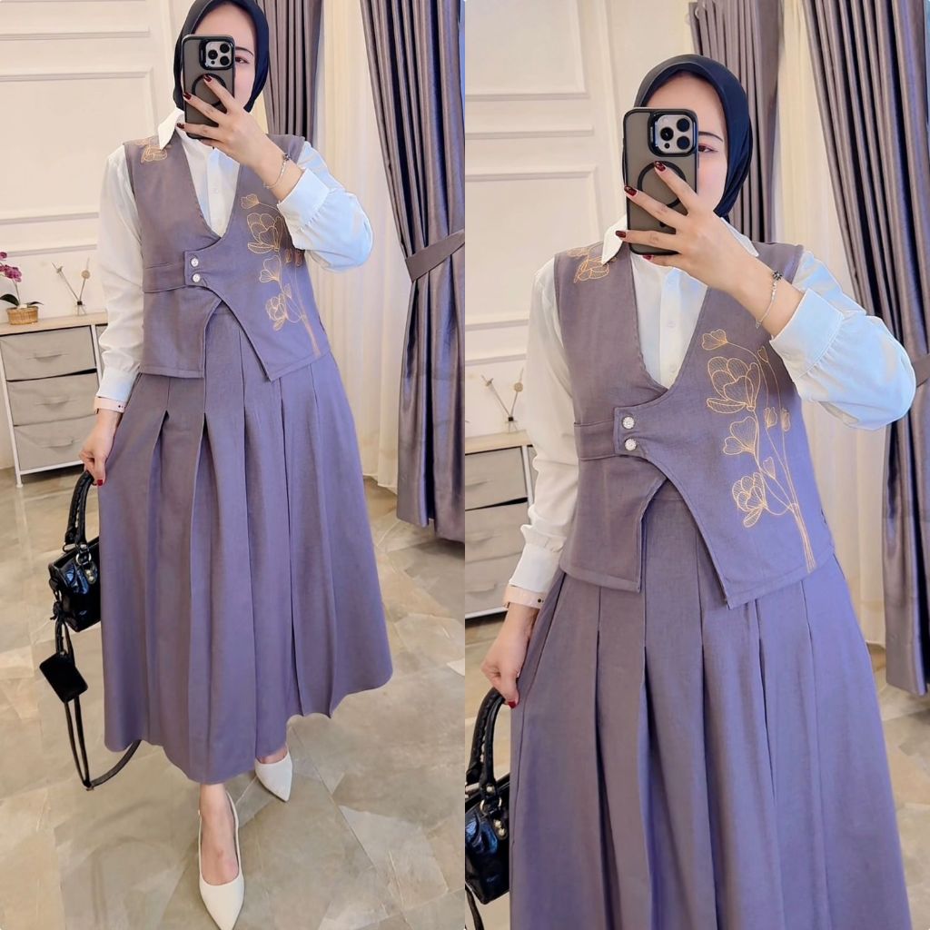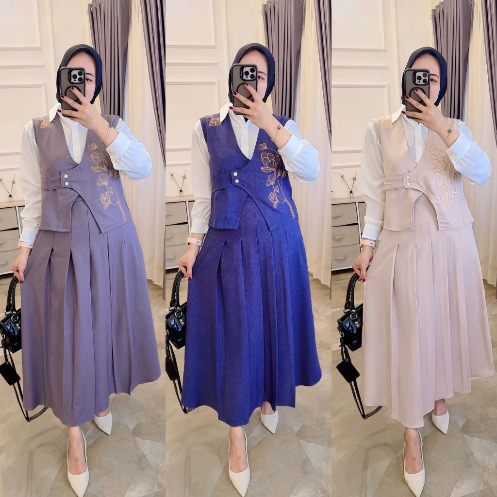 HANAKO One set 2in1 Setelan rok dan vest bordir Wanita dewasa Modis Kekinian Elegan Casual Stylish