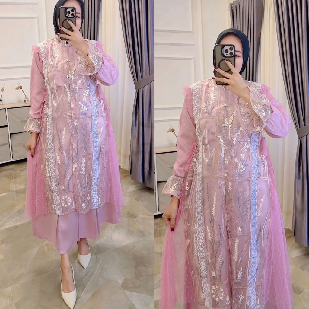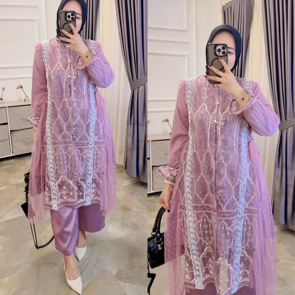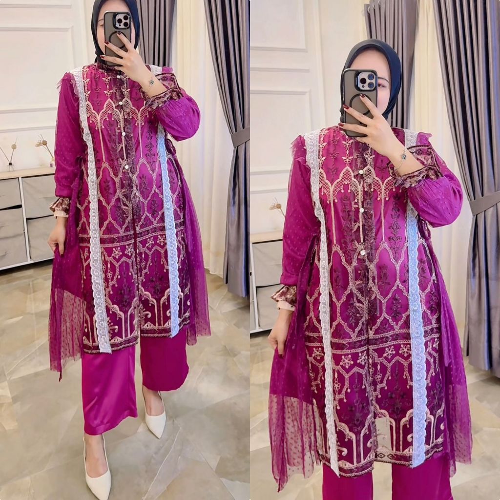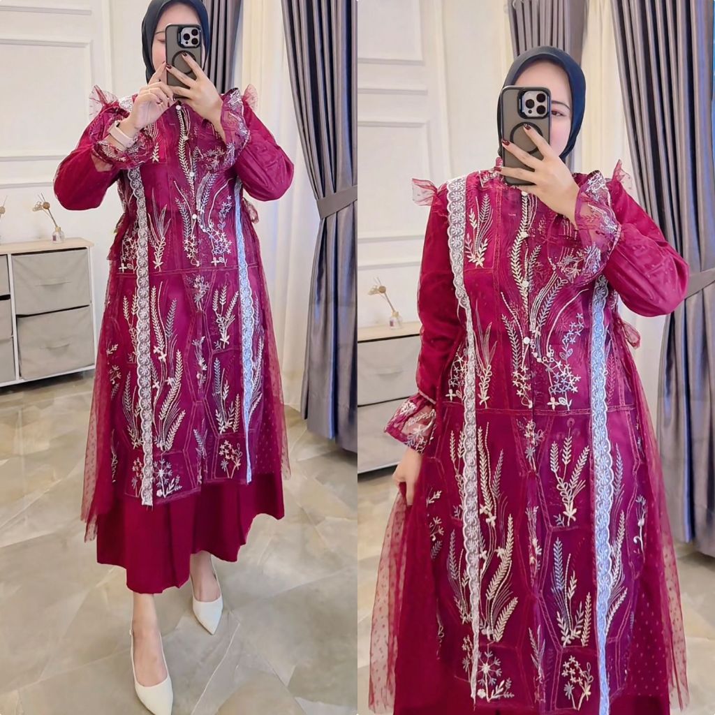 Ciara One Set 3in1 Outer Inner dan Bawahan Tile Brokat Saten Velvet Premium Baju Lebaran Dress Kondangan Modern Mewah