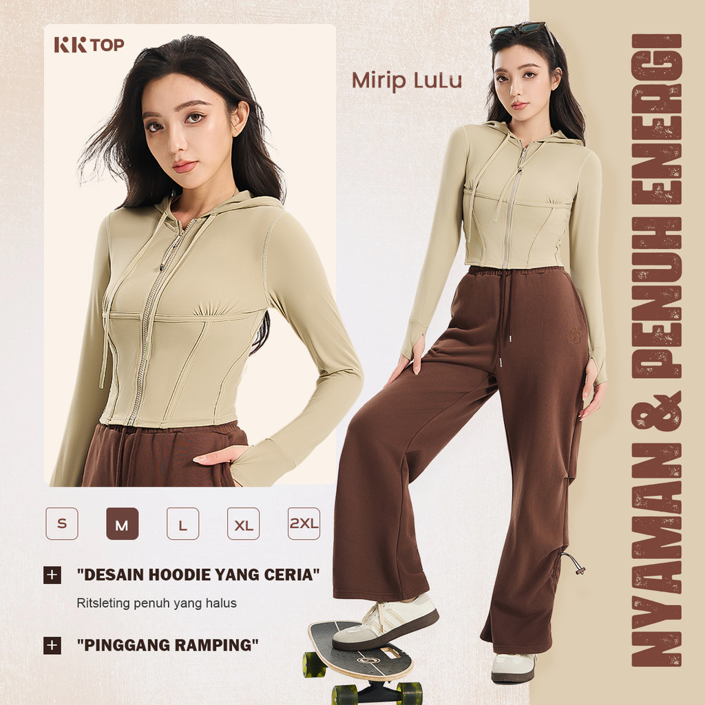 Kktop Hoodie Crop Wanita Zip-Up Lycra® Premium Tahan Angin Quick Dry Slim Sport Gym Ootd X023
