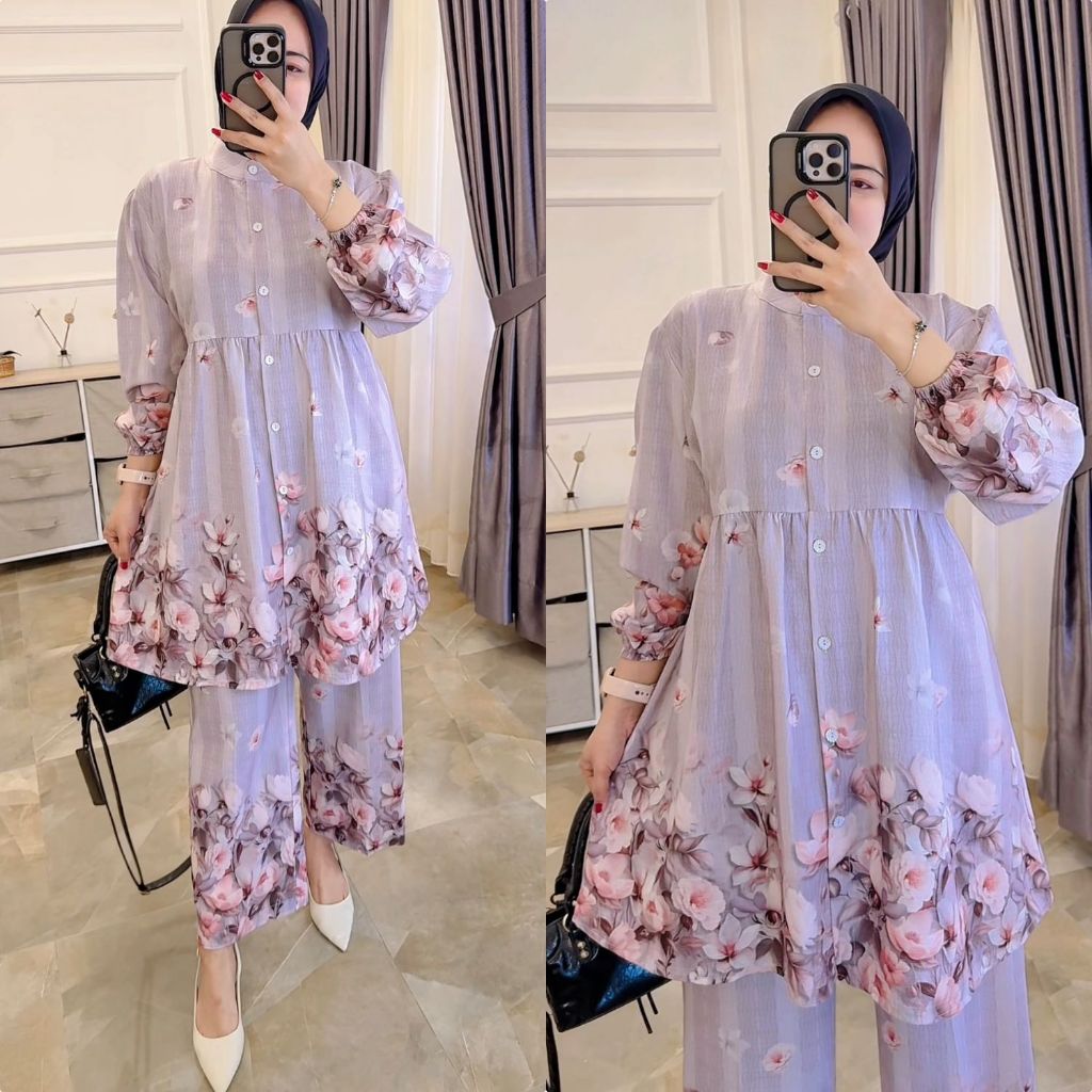 Belleva B One Set Setelan Celana Tunik Wanita Coquette Aesthetic Casual Korean Style Pastel