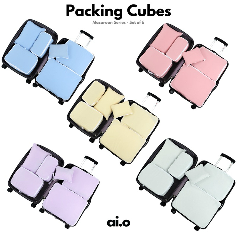AIO 6+4 Pcs Macaron Packing Set Travel Organizer Bag 6in1 Tas Penyimpanan Baju Pouch Storage Estetik