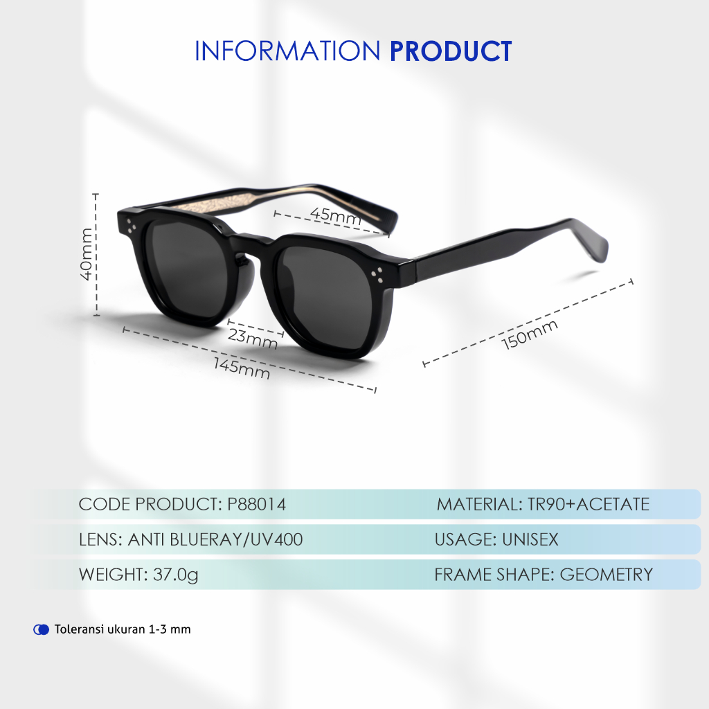 Pullais Eyewear Kacamata Photochromic Anti Radiasi Blueray Bluecromic Bold Geometry TR-90+Acetate Pria Wanita Trendy P88014