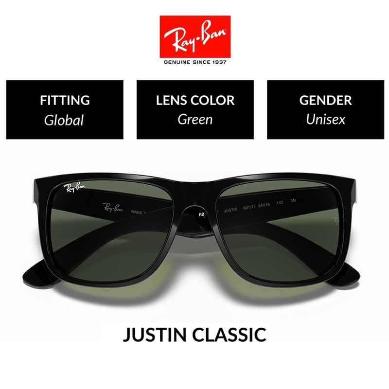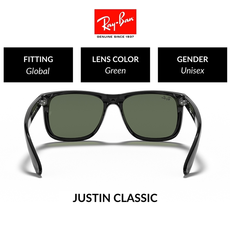 NEW 100 PERSEN Original Ray-Ban Kacamata Hitam Justin RB4165 Sunglasses Black pria wanita Ori Grey Light