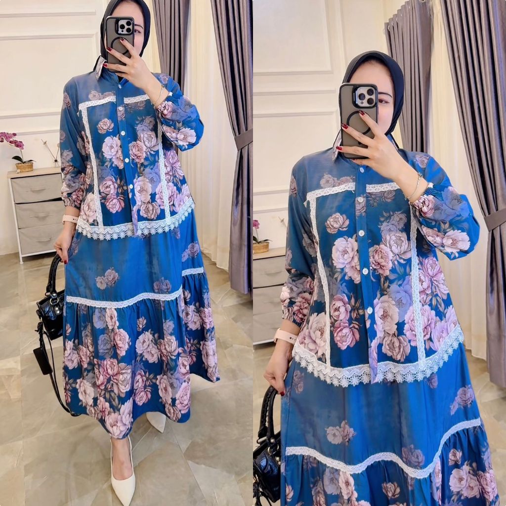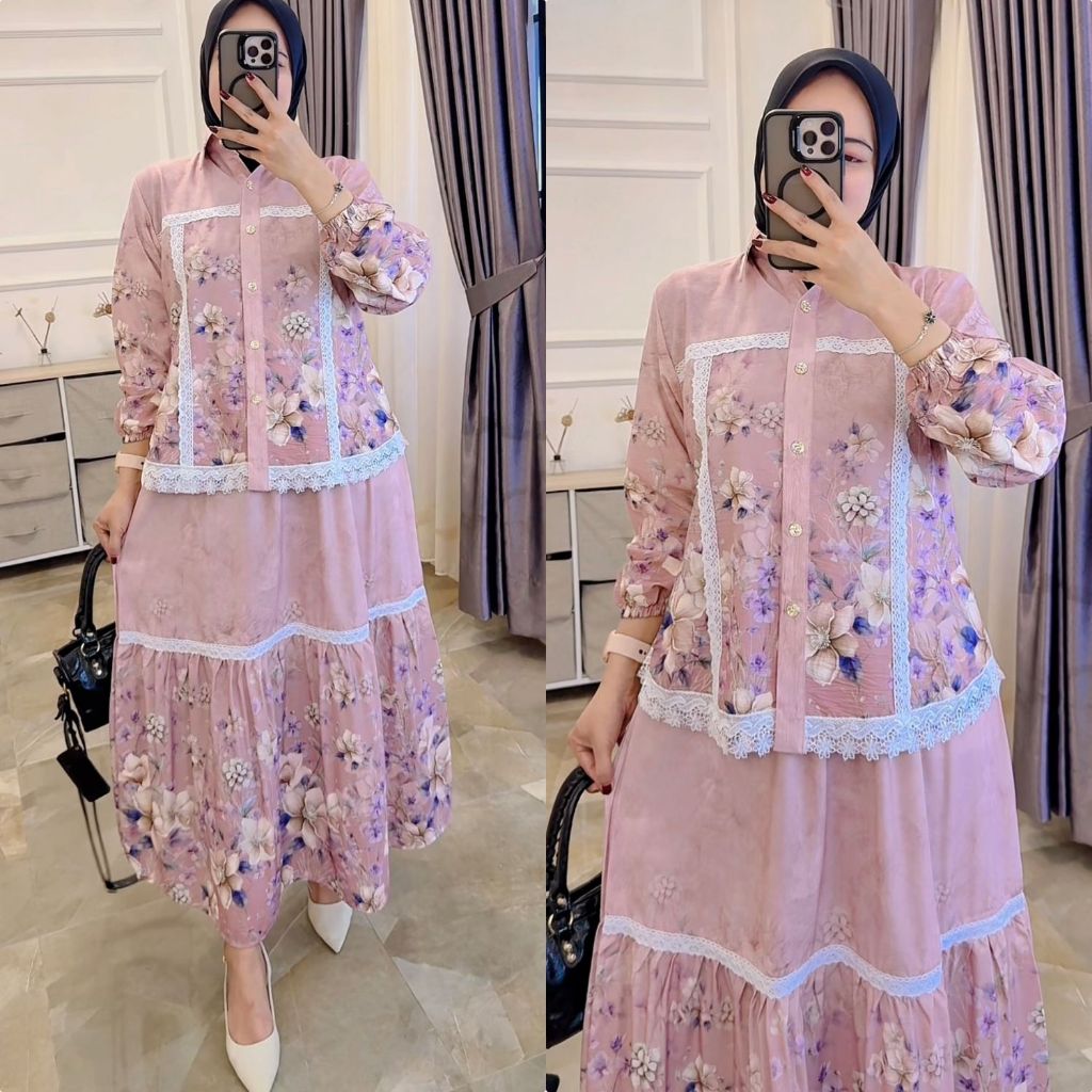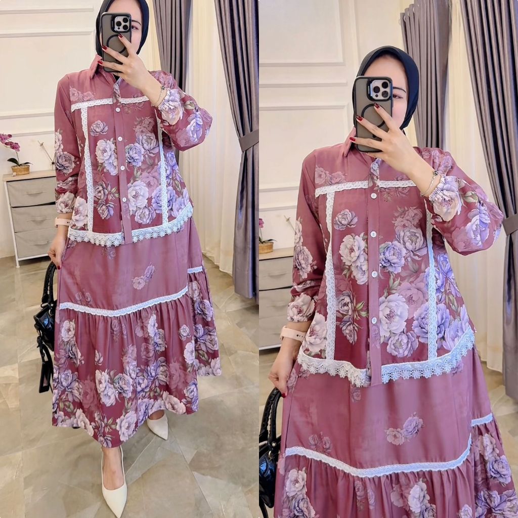 VANIA Coconici B One Set Setelan Rok Tingkat Ruffle Atasan Blouse Wanita Coquette Aesthetic Casual Korean Style Pastel Renda Lace Floral