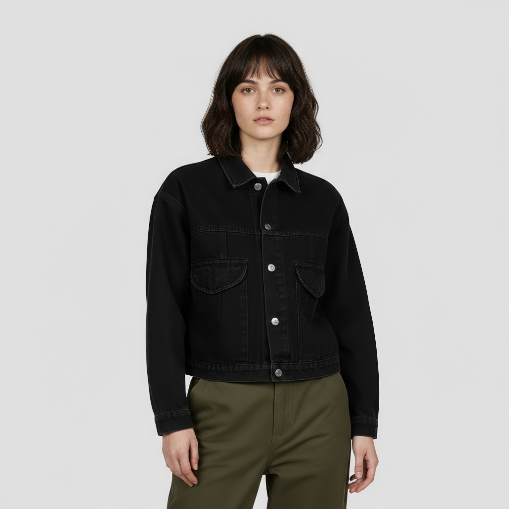 Fairgoods Jaket Denim Wanita Crop Avira Black
