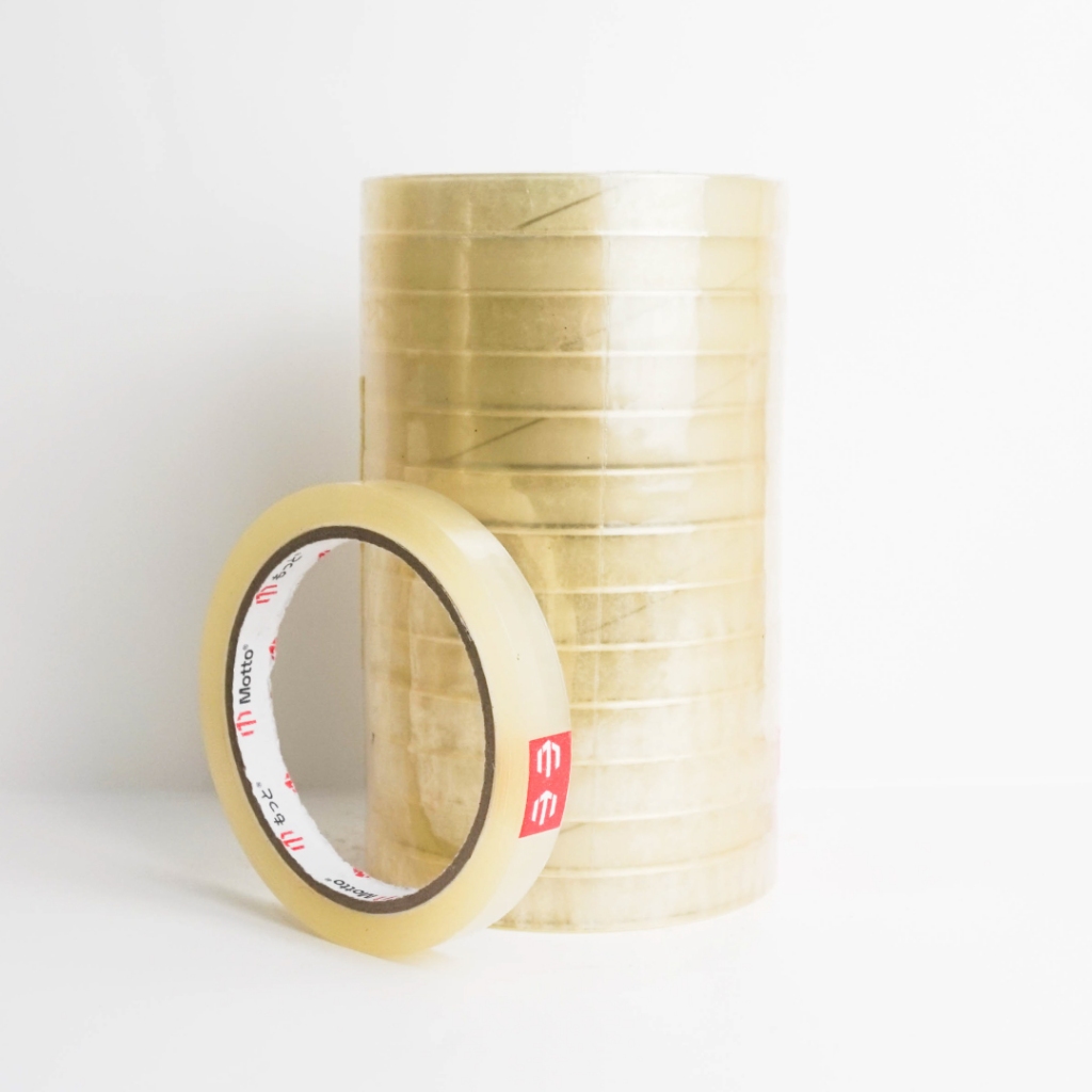 Isolasi Bening 12mm x 60 Yard - 1 Slop Isi 12 Pcs/Roll - Motto Tape