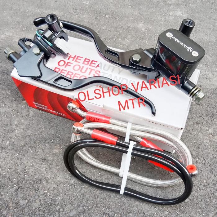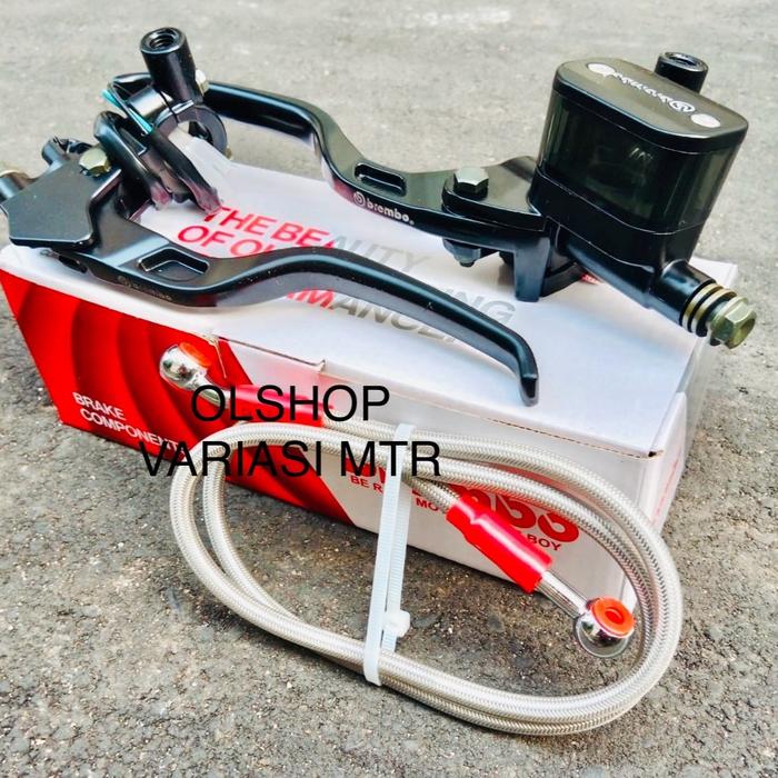 Sepasang Master Rem Kotak Set Selang Rem 95Cm Universal Motorcycle Cakram Tabung - Brembo Kotak+ Selang Silever