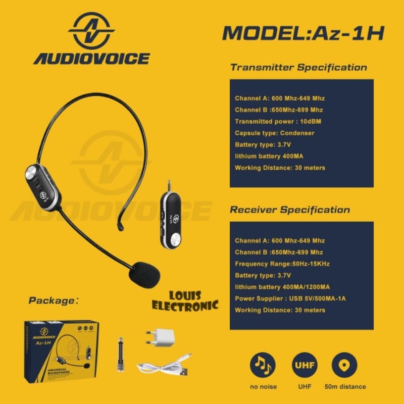 MIC MICROPHONE WIRELESS HEADSET BANDO AUDIOVOICE AZ-1H MIC IMAM MASJID