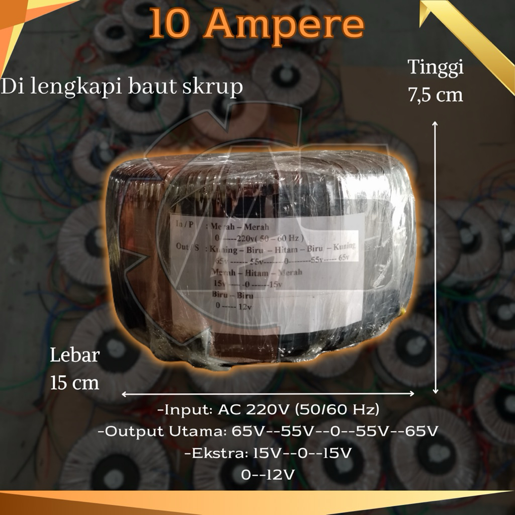 Trafo Toroid Donat 10A CT 65V-55V Tembaga Murni